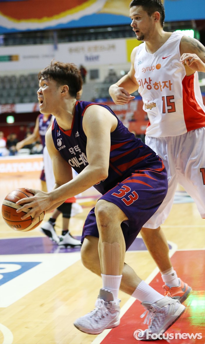 (고양=포커스뉴스) 6일 고양체육관에서 열린 2015-2016 프로농구 오리온-SK 경기에서 오리온 이승현이 SK 김민수를 제치고 슈팅을 노리고 있다.