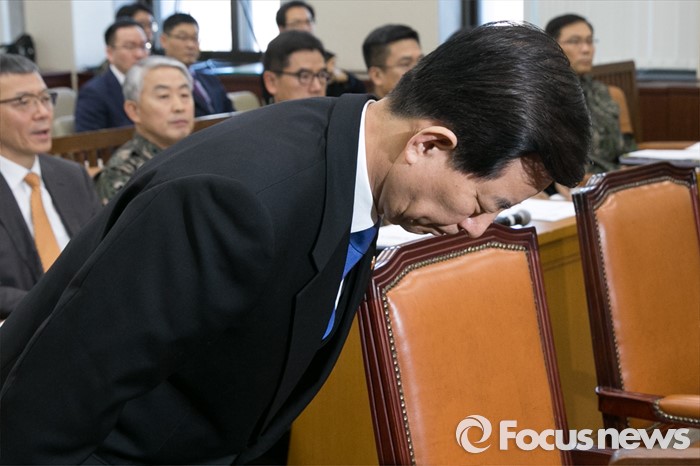 (서울=포커스뉴스) 한민구 국방부 장관이 7일 오전 서울 여의도 국회에서 북한의 수소탄 핵실험과 관련해 열린 국방위원회 전체회의에 출석해, 현안보고 전 인사하고 있다.