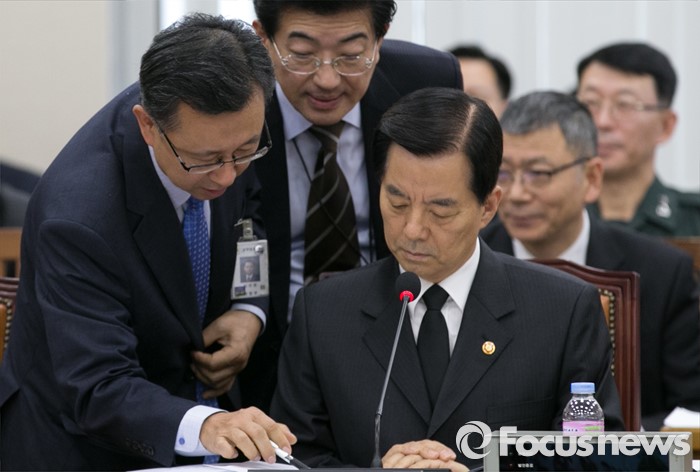 국방부는 1~3차 핵실험은 모두 북한 외무성의 성명을 통해 사전 예고하고 주변국에 통보 후 강행했지만 이번 경우는 그렇지 않았다고 밝혔다.25일 오후 서울 여의도 국회에서 열린 국방위원회 전체회의에 참석한 한민구 국방부 장관이 관계자들과 논의하고 있다. 2015.11.25 박동욱 기자