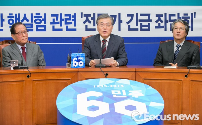 (서울=포커스뉴스) 문재인(가운데) 더불어민주당 대표가 7일 오후 서울 여의도 국회에서 열린 '북한 핵실험 관련 전문가 긴급 좌담회'를 주재하고 있다.