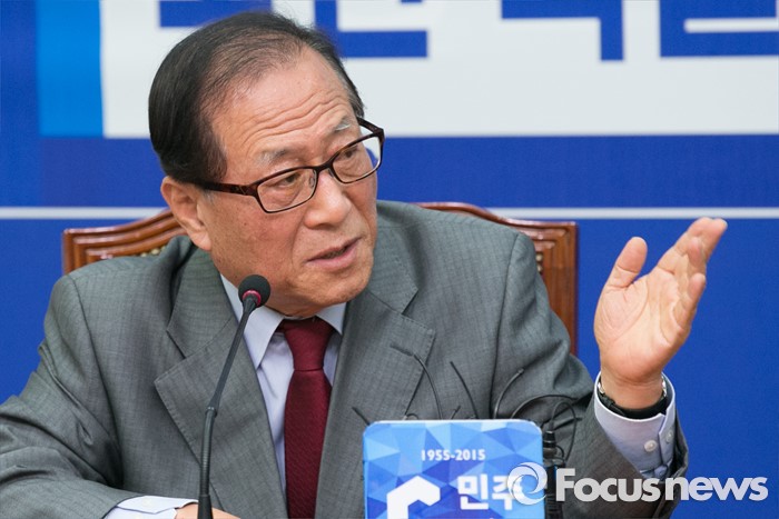(서울=포커스뉴스) 정세현 전 통일부 장관이 7일 오후 서울 여의도 국회 더불어민주당 대표실에서 열린 '북한 핵실험 관련 전문가 긴급 좌담회'에 참석해 인사말을 하고 있다.
