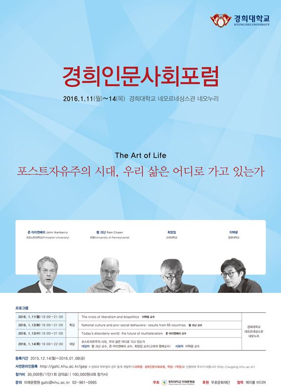 마지막 날인 14일은‘포스트자유주의 시대, 우리 삶은 어디로 가고 있는가’를 주제로 대담이 진행된다.