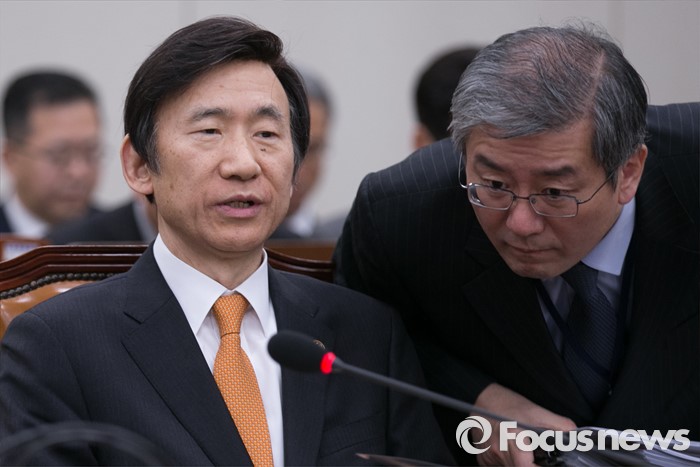 (서울=포커스뉴스) 7일 오후 서울 여의도 국회에서 북한의 수소탄 핵실험 발표 등에 관한 긴급 현안보고를 위해 열린 외교통일위원회 전체회의에 참석한 윤병세(왼쪽) 외교부 장관이 관계자와 대화하고 있다.