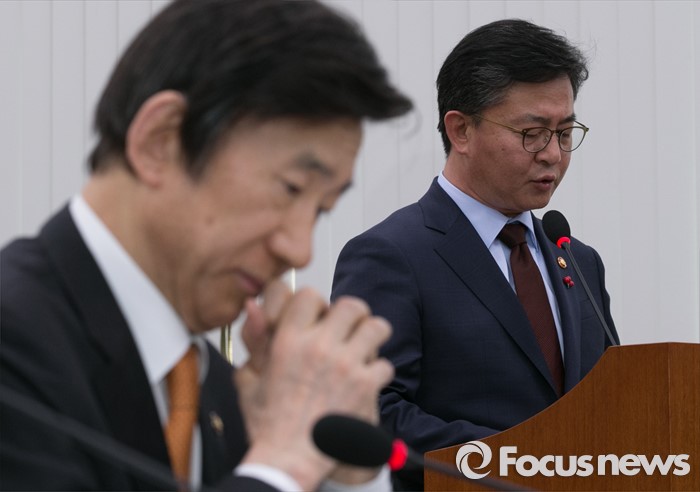 (서울=포커스뉴스) 7일 오후 서울 여의도 국회에서 북한의 수소탄 핵실험 발표 등에 관한 긴급 현안보고를 위해 열린 외교통일위원회 전체회의에 참석한 홍용표 통일부 장관이 현안보고를 하고 있다. 왼쪽은 윤병세 외교부 장관.
