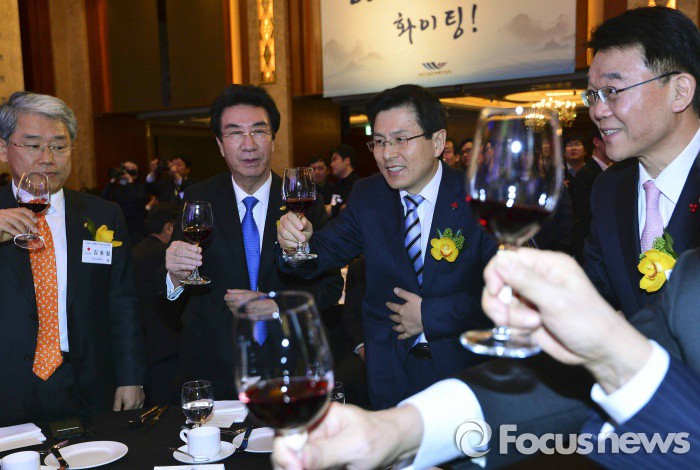 (서울=포커스뉴스) 황교안 국무총리가 7일 오후 서울 중구 롯데호텔에서 열린 '2016 건설인 신년인사회'에서 건설인들과 건배를 하고 있다.