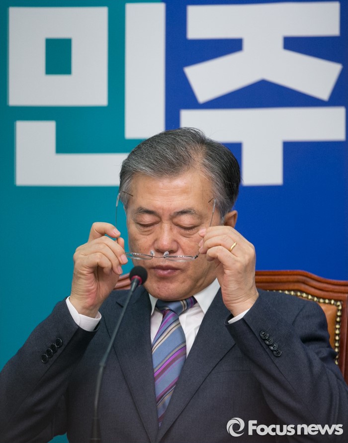(서울=포커스뉴스) 문재인 더불어민주당 대표가 8일 오전 서울 여의도 국회에서 열린 최고위원회의에 참석해 안경을 고쳐쓰고 있다.