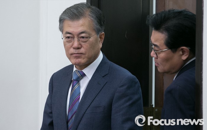 (서울=포커스뉴스) 문재인(왼쪽) 더불어민주당 대표과 전병헌 최고위원이 8일 오전 서울 여의도 국회에서 열린 최고위원회의에 참석하며 대화하고 있다.