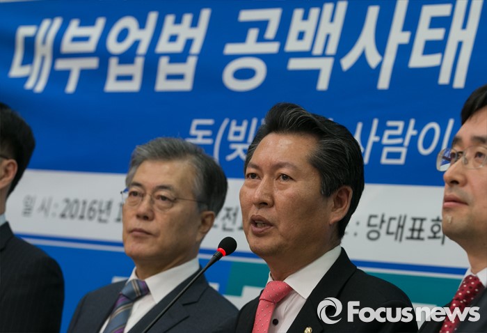 (서울=포커스뉴스) 정청래 더불어민주당 가계부채특위 위원장이 8일 오전 서울 여의도 국회에서 대부업법 공백상태 긴급대응 기자회견을 하고 있다.