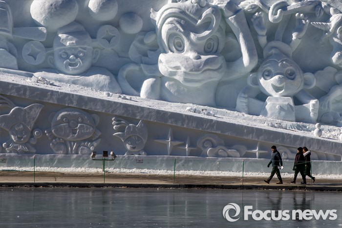 (화천=포커스뉴스) 산천어축제를 하루 앞둔 8일 오후 강원도 화천군 산천어축제 행사장인 화천천에 얼음조각 작품이 전시되고 있다. 산천어축제는 오는 9일부터 31일까지 강원도 화천군 화천천 및 3개읍면 일원에서 진행될 예정이다.