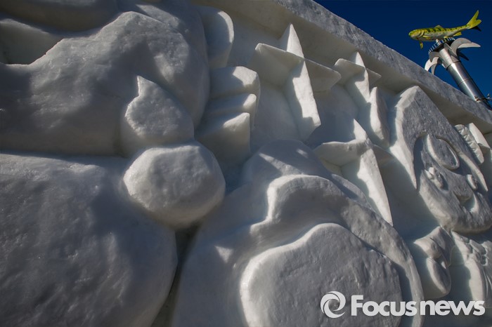 (화천=포커스뉴스) 산천어축제를 하루 앞둔 8일 오후 강원도 화천군 산천어축제 행사장인 화천천에 얼음조각 작품이 전시되고 있다. 산천어축제는 오는 9일부터 31일까지 강원도 화천군 화천천 및 3개읍면 일원에서 진행될 예정이다.