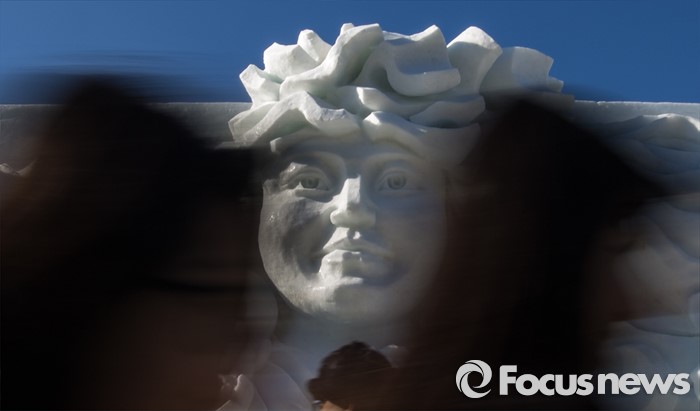 (화천=포커스뉴스) 산천어축제를 하루 앞둔 8일 오후 강원도 화천군 산천어축제 행사장인 화천천에 얼음조각 작품이 전시되고 있다. 산천어축제는 오는 9일부터 31일까지 강원도 화천군 화천천 및 3개읍면 일원에서 진행될 예정이다.
