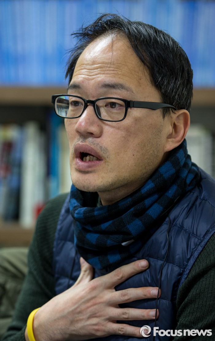 (서울=포커스뉴스) 민주사회를위한변호사모임 소속 박주민 변호사가 5일 오후 서울 서초구 법무법인 이공 사무실에서 세월호 사태 관련 변호사 활동 및 앞으로 방향과 세월호 사태 책임자 판결에 대한 의견을 밝히고 있다.