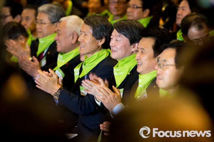 (서울=포커스뉴스) 안철수 국민의당 의원을 비롯한 주요관계자들이 10일 오후 서울 종로구 세종문화회관 세종홀에서 열린 '국민의당 창당발기인대회'에 자리해 박수치고 있다.