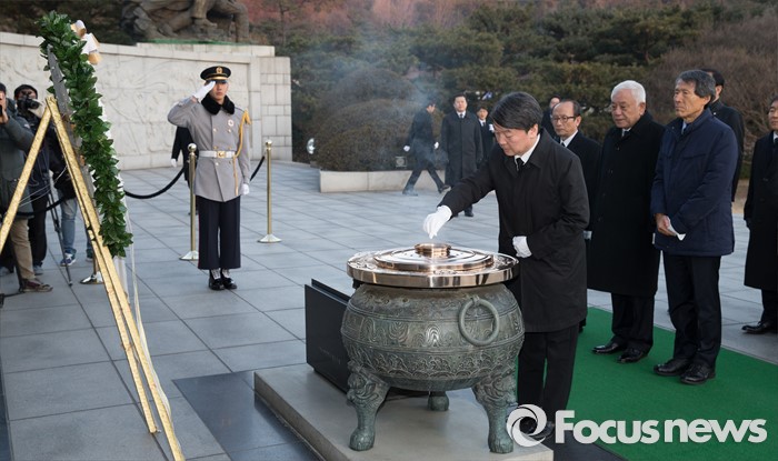 (서울=포커스뉴스) '국민의당' 창당을 추진하는 안철수 무소속 의원이 11일 오전 서울 동작구 국립서울현충원을 방문해 분향을 하고 있다.