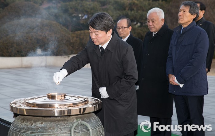 (서울=포커스뉴스) '국민의당' 창당을 추진하는 안철수 무소속 의원이 11일 오전 서울 동작구 국립서울현충원을 방문해 분향을 하고 있다.