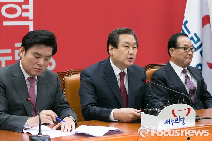 (서울=포커스뉴스) 김무성(가운데) 새누리당 대표가 11일 오전 서울 여의도 국회에서 열린 최고위원회의에 참석해 모두발언하고 있다.