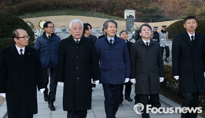 (서울=포커스뉴스) '국민의당' 창당을 준비중인 안철수 의원, 한상진 공동창당준비위원장, 김한길 의원 등이 11일 오전 서울 동작구 국립서울현충원 박정희 전 대통령 묘소를 참배한 뒤 이동하고 있다.