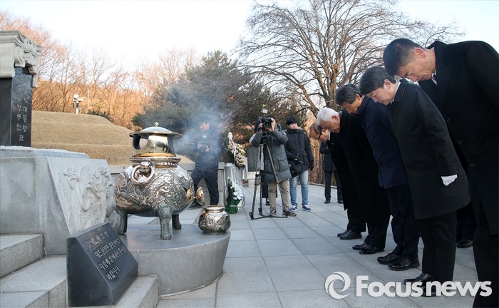 (서울=포커스뉴스) '국민의당' 창당을 준비중인 안철수 의원, 한상진 공동창당준비위원장, 김한길 의원 등이 11일 오전 서울 동작구 국립서울현충원 박정희 전 대통령 묘소를 찾아 참배하고 있다.