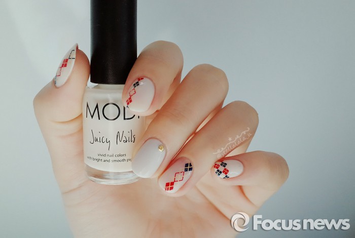 가격은 1매당 3500원이다.새 네일 스티커 2호 '아가일 패브릭'을 사용한 네일아트 <사진제공=아리따움>