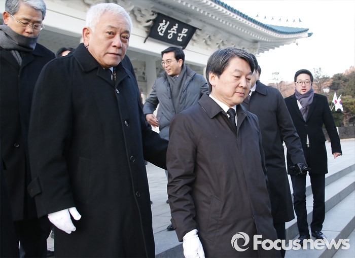 (서울=포커스뉴스) '국민의당' 창당을 준비중인 안철수, 김한길(왼쪽) 의원 등이 11일 오전 동작구 국립서울현충원 현충탑을 참배한 뒤 버스를 타기 위해 이동하고 있다.