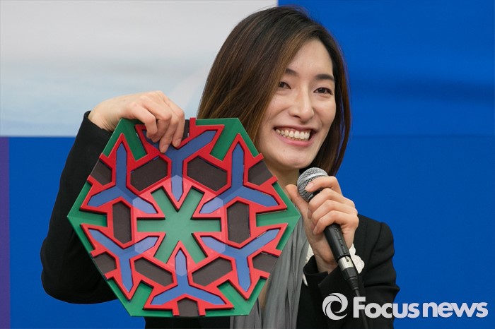 (서울=포커스뉴스) 11일 오후 서울 여의도 국회 더불어민주당 당대표회의실에서 김빈 디자이너가 입당 기자회견을 마치고, 자신의 작품을 설명하고 있다.