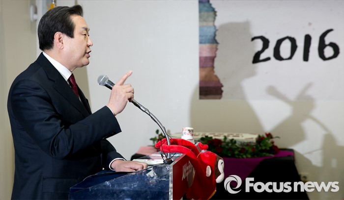 (서울=포커스뉴스) 김무성 새누리당 대표가 11일 오후 서울 여의도 당사에서 열린 2016 중앙여성위원회 신년인사회에 참석해 축사를 하고 있다.
