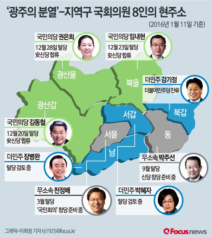 | △ [그래픽] ‘광주의 분열’-지역구 국회의원 8인의 현주소 |