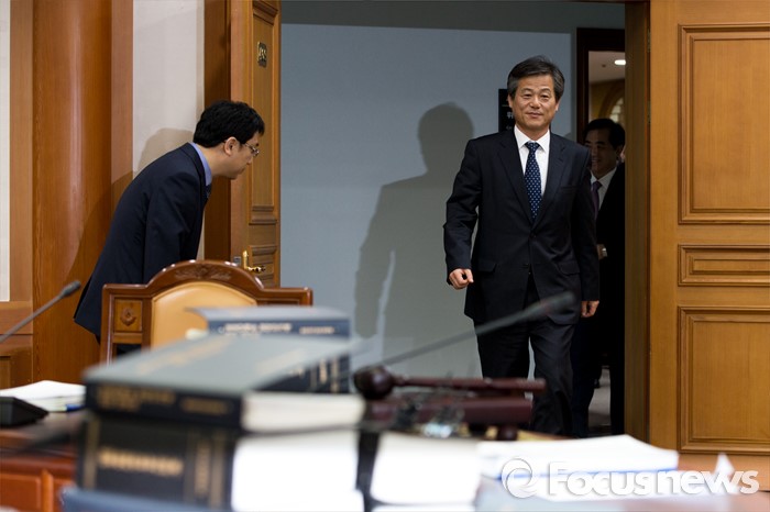 (과천=포커스뉴스) 이인복 중앙선거관리위원회 위원장이 11일 오후 경기도 과천시 중앙선거관리위원회에서 열린 전체회의에 참석하기 위해 회의실로 들어서고 있다. 이날 이 위원장은 오는 4월 13일 총선 '선거구 실종' 장기화 사태에 따른 대책을 모색할 예정이다.
