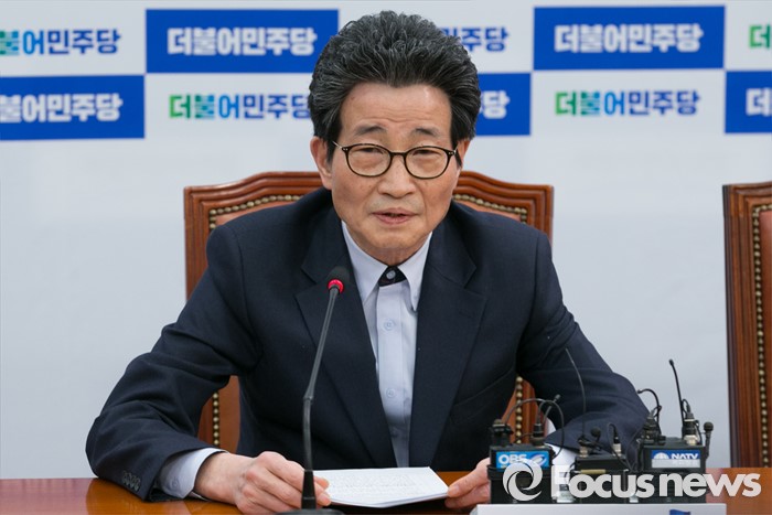 (서울=포커스뉴스) 이목희 더불어민주당 정책위의장이 12일 오전 서울 여의도 국회에서 열린 현안 관련 기자간담회에 참석해 모두발언을 하고 있다.
