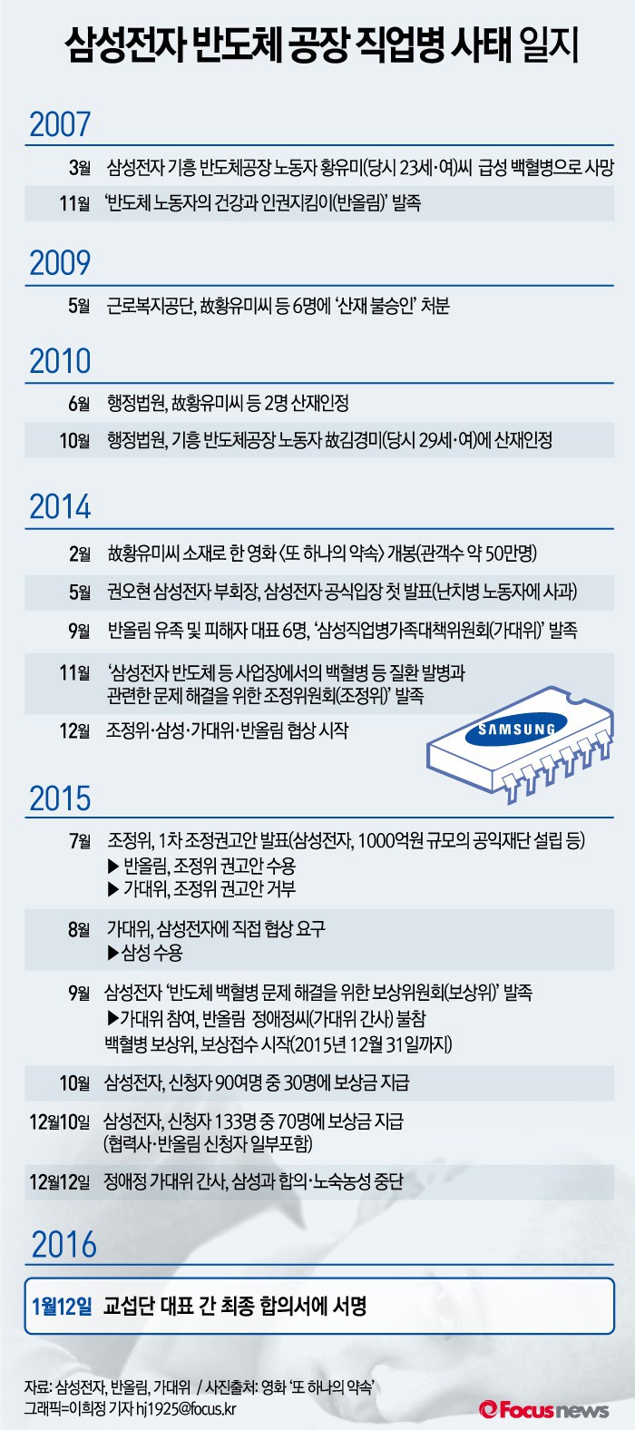 | △ [그래픽] 삼성전자 반도체 공장 작업병 사태 일지 |