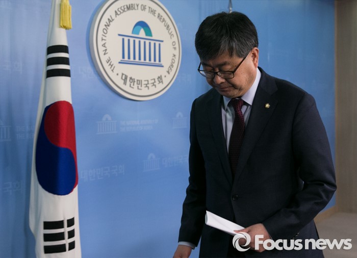 (서울=포커스뉴스) 최원식 더불어민주당 의원이 12일 오전 서울 여의도 국회 정론관에서 탈당 및 국민의당 합류 기자회견을 마친 뒤 퇴장하고 있다.