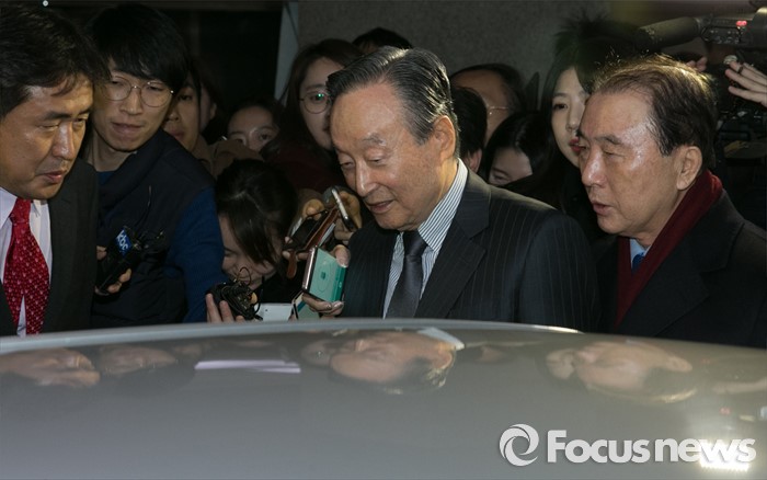 (서울=포커스뉴스) 권노갑 더불어민주당 상임고문이 12일 오전 서울 여의도 국회 정론관에서 탈당 기자회견을 마친 뒤 차량에 오르고 있다.