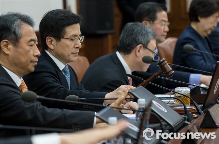 (서울=포커스뉴스) 12일 오전 서울 종로구 정부서울청사에서 열린 국무회의에 황교안 국무총리가 의사봉을 두드리고 있다.