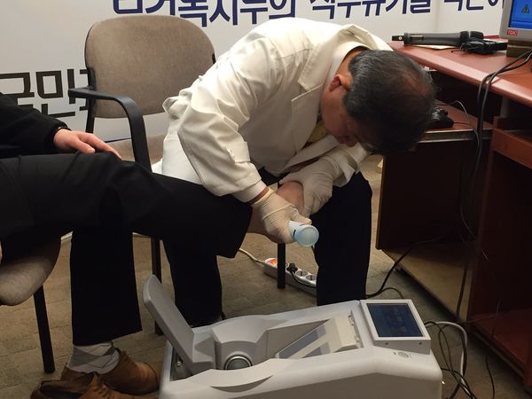 김 회장은 골밀도 측정 후 “방금 보셨듯이 어려운 내용도 없고 누구나 다 할 수 있다”며 “이런 의료기기를 사용하는 것인데도 의료계가 한의사들을 고발하고 있는 실정”이라고 꼬집었다.