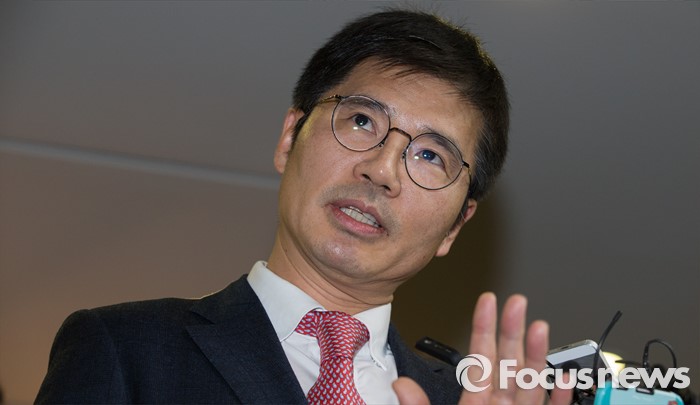 (서울=포커스뉴스) 12일 오전 서울 서대문구 충정로 법무법인 지평 회의실에서 열린 '삼성전자 반도체 등 사업장에서의 백혈병 등 질환 발병과 관련한 문제 해결을 위한 조정위원회'에서 최종 합의서에 서명을 마친 백수현 삼성전자 전무가 취재진의 질문에 답변을 하고 있다.