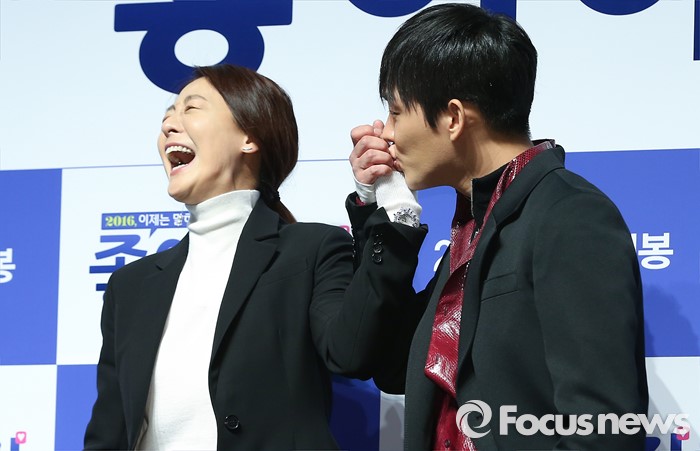 (서울=포커스뉴스) 12일 오전 서울 강남구 압구정 CGV에서 열린 영화 '좋아해줘' 제작보고회에 참석한 배우 이미연(왼쪽)과 유아인이 포토타임을 갖고 있다.