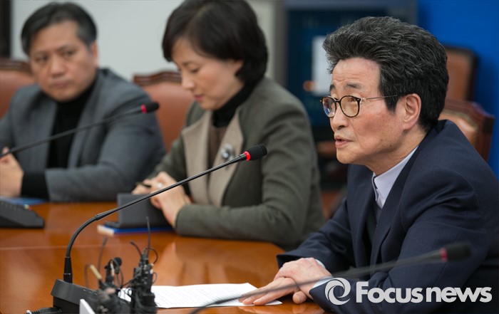 (서울=포커스뉴스) 12일 오후 서울 여의도 국회에서 열린 더불어민주당 누리과정대책특위 1차 회의에 참석한 이목희 정책위의장이 모두발언을 하고 있다.