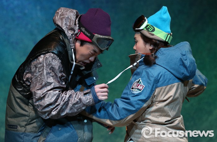 (서울=포커스뉴스) 12일 오후 서울 종로구 상명아트홀에서 열린 연극 'ALMOST MAINE(올모스트 메인)' 프레스콜에 참석한 연극배우 오의식(왼쪽)과 정선아가 공연을 선보이고 있다.