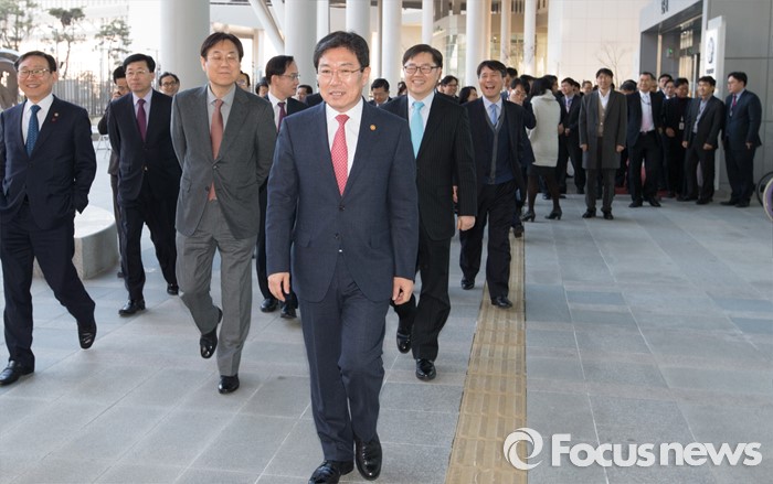(세종=포커스뉴스) 윤상직 산업통상자원부장관이 12일 오후 세종시 정부세종청사 산업통상자원부 대강당에서 열린 이임식을 마치고 청사를 나서고 있다.