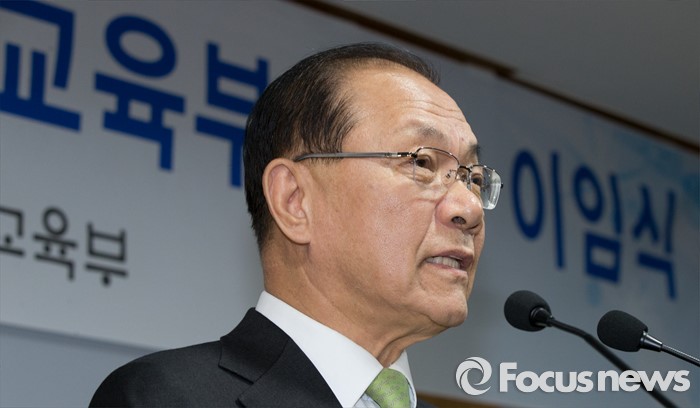 (세종=포커스뉴스) 황우여 사회부총리 겸 교육부장관이 12일 오후 세종시 정부세종청사 교육부 대회의실에서 열린 이임식에서 이임사를 하고 있다.