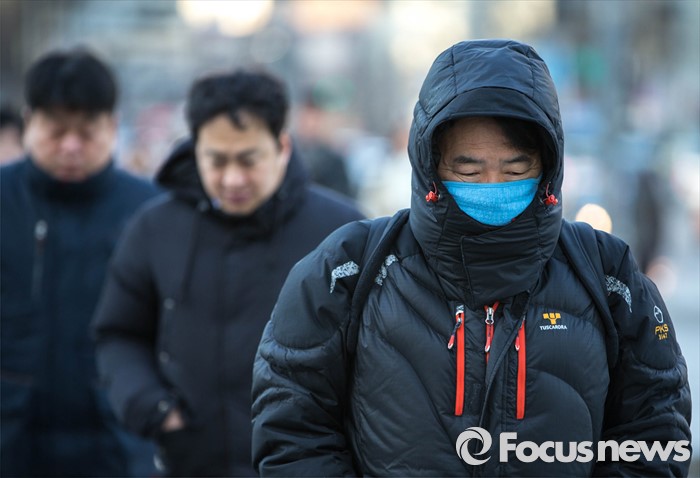 (서울=포커스뉴스) 계속되는 맹추위로 전국이 꽁꽁 얼어붙은 13일 오전 서울 종로구 세종로 사거리에서 출근길 시민들이 중무장을 하고 걷고 있다. 현재 서울 기온은 영하 9도를 기록하고 있으며 충남과 호남 서해안 지역에는 대설주의보가 내려졌다.
