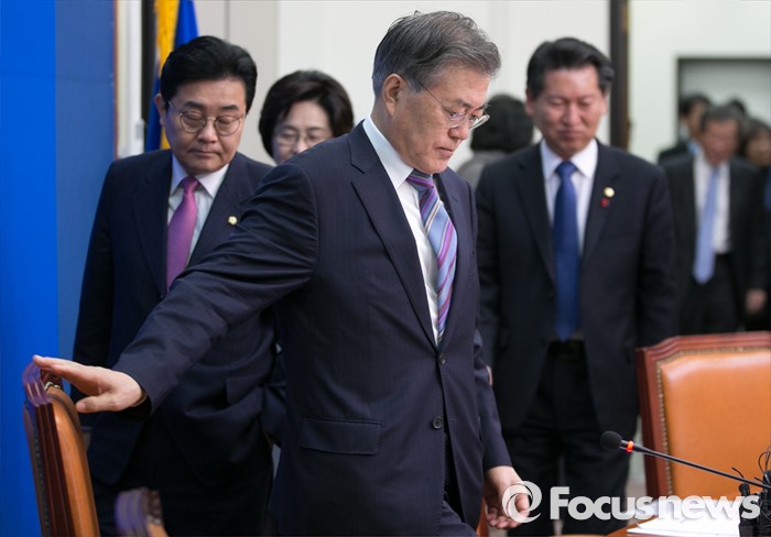 (서울=포커스뉴스) 문재인 더불어민주당 대표가 13일 오전 서울 여의도 국회에서 열린 최고위원회의에 참석하고 있다.