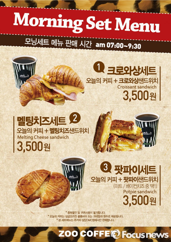 (서울=포커스뉴스) 카페 프랜차이즈 ‘주커피’(ZOO COFFEE)는 출근길 직장인들을 위한 ‘주커피 모닝세트 3종’를 출시하고 상암DMC점에서 한정 판매한다고 13일 밝혔다.
