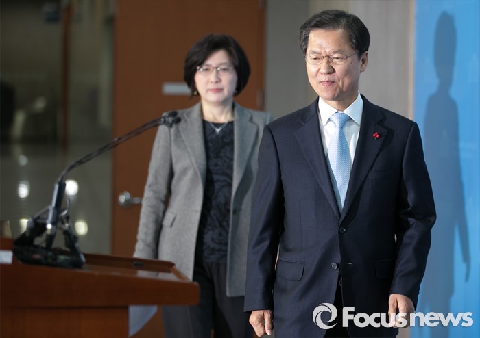 (서울=포커스뉴스) 13일 오전 서울 여의도 국회 정론관에서 천정배(오른쪽) 국민회의 창당준비위원장과 박주현 정책위원장이 정책발표 기자회견을 위해 입장하고 있다.