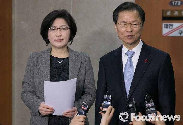 (서울=포커스뉴스) 13일 오전 서울 여의도 국회 정론관에서 천정배(오른쪽) 국민회의 창당준비위원장과 박주현 정책위원장이 정책발표 기자회견을 마친 뒤 취재진 질문에 답하고 있다.