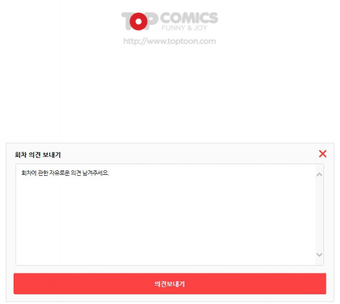 탑툰에서 서비스되고 있는 회차 의견 보내기는 독자들과의 소통, 작품 개선을 위해 연재 중인 170여 개 작품 및 이후 연재될 작품 전체에 적용된다. 웹툰을 감상하는 독자들은 자신이 본 회차 또는 작품에 대한 개선, 불만 등의 다양한 의견을 보낼 수 있고 이를 편집부가 접수한 뒤 작가와 상의해 반영될 예정이다.