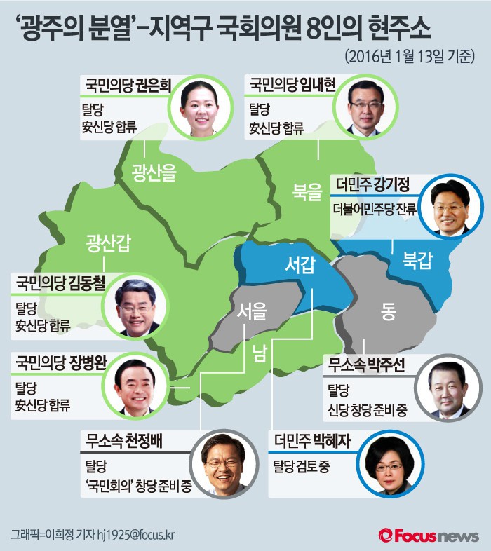 | △ [그래픽] ‘광주의 분열’-지역구 국회의원 8인의 현주소 |