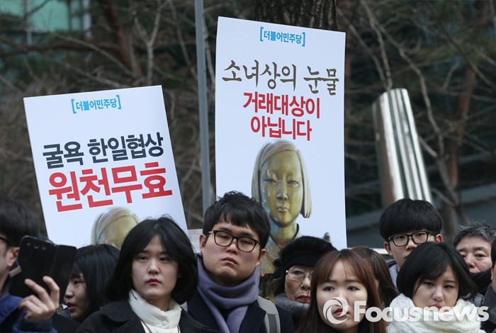 (서울=포커스뉴스) 13일 오후 서울 종로구 옛 일본대사관 앞에서 열린 제1213차 일본군 위안부 피해자 문제 해결 위한 정기 수요시위에서 참가자들이 일본정부의 공식 사과를 촉구 하고 있다.