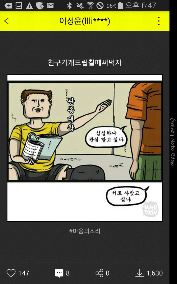 김준구 네이버 웹툰&웹소설CIC 대표는 "웹툰은 단순히 감상만 하는 콘텐츠가 아니라 독자들이 어떻게 활용하느냐에 따라 색다른 재미 요소가 무궁무진한 콘텐츠"라며, "독자들이 직접 만든 독특하고 센스있는 짤들로 가득해질 겟!짤 코너가 될 것을 기대한다"고 말했다.짤방 서비스 '겟!짤' <사진제공=네이버>