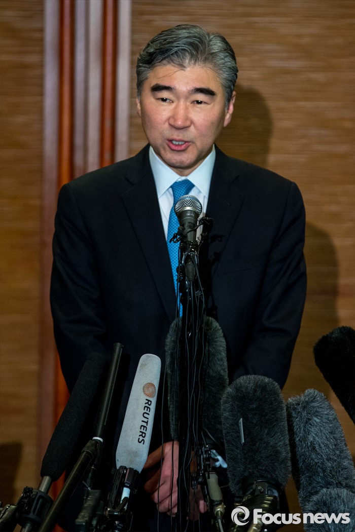 (서울=포커스뉴스) 성 김 미국 국무부 대북정책특별대표가 13일 오후 서울 중구 롯데호텔에서 열린 '한미일 6자회담 수석대표 긴급회동'에 자리해 북한 4차 핵실험 강행 관련 대북제재 방안 논의를 마친 뒤 입장발표를 하고 있다.